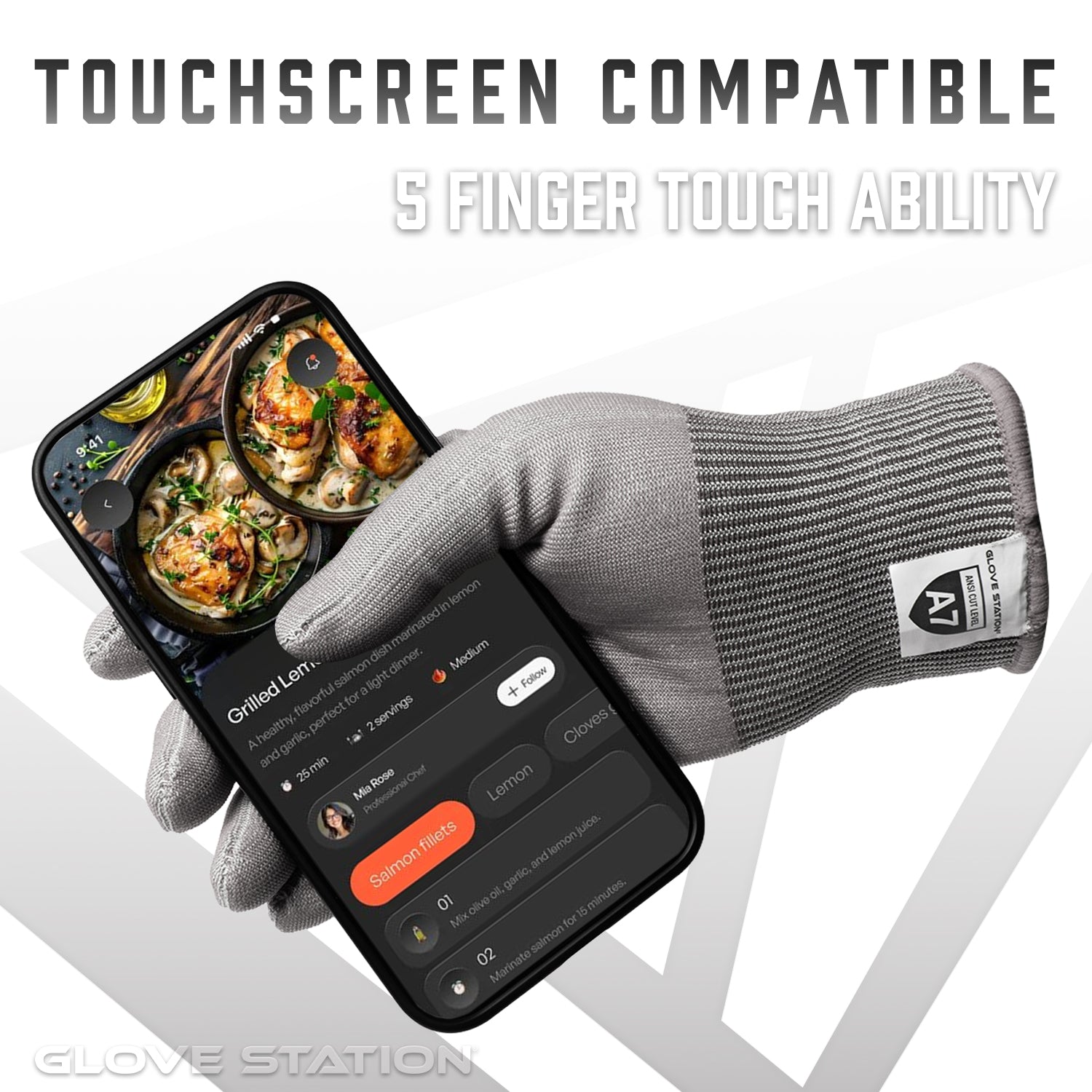 Our A7 Series Cut-Resistant Gloves bring unmatched protection and performance to chefs, butchers, and culinary professionals who demand the highest level of safety in the kitchen. Engineered with ANSI A7 cut protection, these food-grade safe gloves provide superior defense when chopping, slicing, filleting, grating, or handling sharp shells and bones. Despite their extreme durability, they remain flexible and comfortable for extended use during fast-paced food prep or tough home tasks. Designed with convenience in mind, the A7 Series includes touch-screen compatible threading in the index finger and thumb, allowing seamless use of digital timers, recipe apps, and smart devices without removing your gloves. With a broad range of sizes and easy machine-wash care, these gloves offer professional-grade protection that’s ready for both the commercial kitchen and the home cook.
