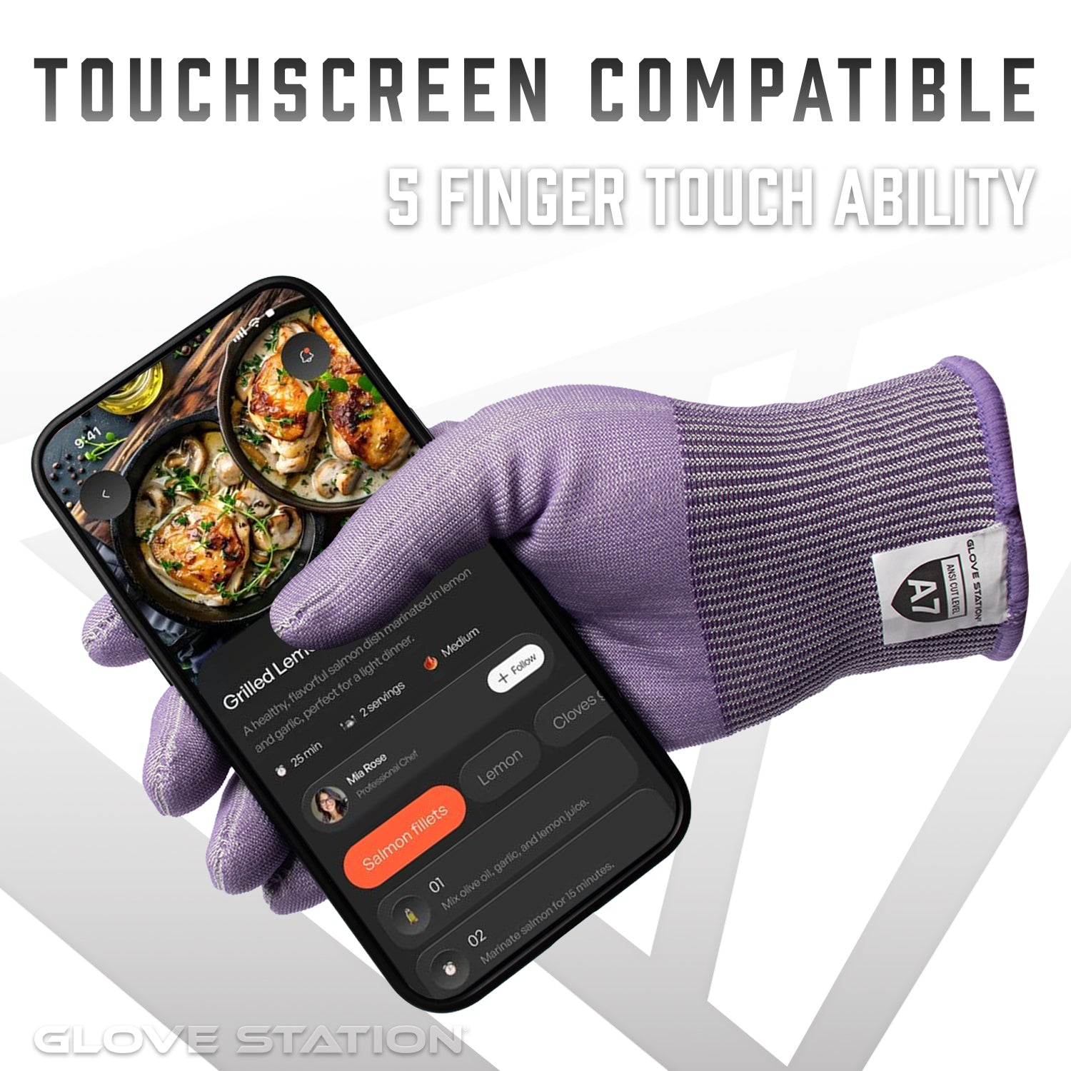 Our A7 Series Cut-Resistant Gloves bring unmatched protection and performance to chefs, butchers, and culinary professionals who demand the highest level of safety in the kitchen. Engineered with ANSI A7 cut protection, these food-grade safe gloves provide superior defense when chopping, slicing, filleting, grating, or handling sharp shells and bones. Despite their extreme durability, they remain flexible and comfortable for extended use during fast-paced food prep or tough home tasks. Designed with convenience in mind, the A7 Series includes touch-screen compatible threading in the index finger and thumb, allowing seamless use of digital timers, recipe apps, and smart devices without removing your gloves. With a broad range of sizes and easy machine-wash care, these gloves offer professional-grade protection that’s ready for both the commercial kitchen and the home cook.