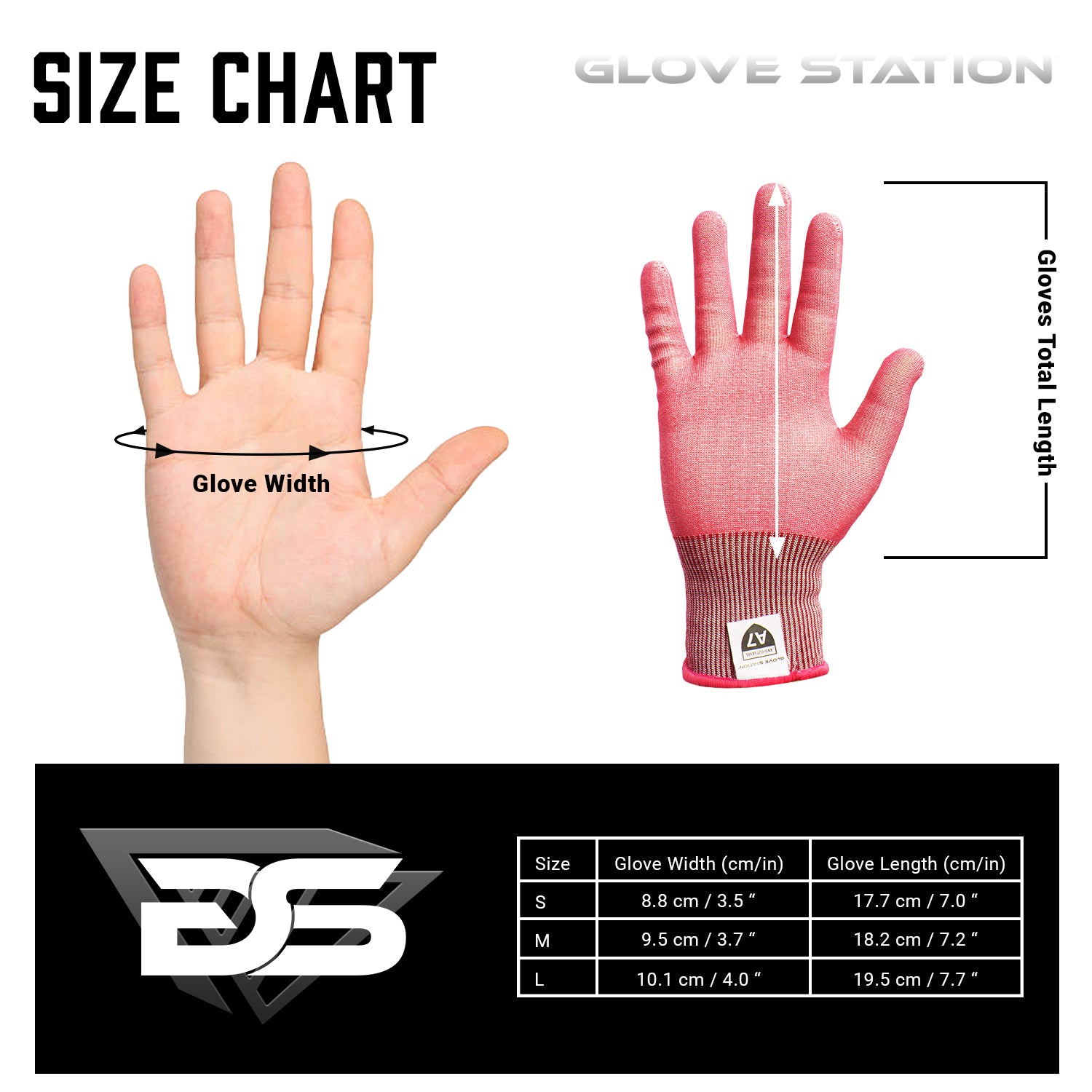 | Size Chart (Inches) | Glove Length | Glove Width | Cuff Length |