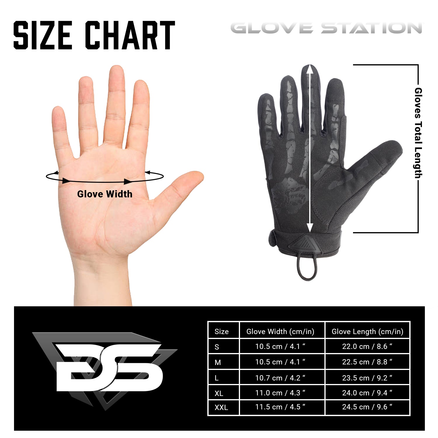 | Size Chart (Inches) | Glove Length | Glove Width | Cuff Length |
