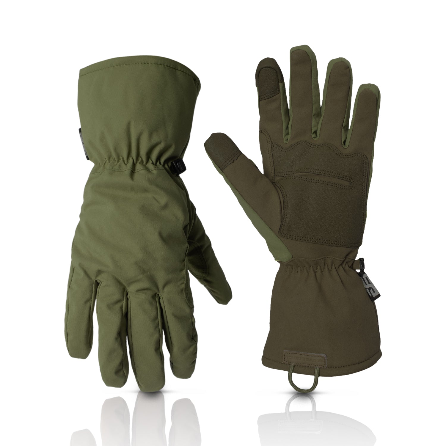 Stay warm, dry, and concealed in harsh outdoor conditions with these waterproof, heat-retaining gloves featuring extended gauntlet-style cuffs. Designed for cold-weather performance, the insulated construction locks in body heat while a waterproof barrier keeps hands protected from snow, rain, and wind. The long gauntlet cuffs seal out the elements and fit securely over jacket sleeves for maximum coverage. Built for durability and comfort, they deliver reliable protection when conditions are at their toughest.